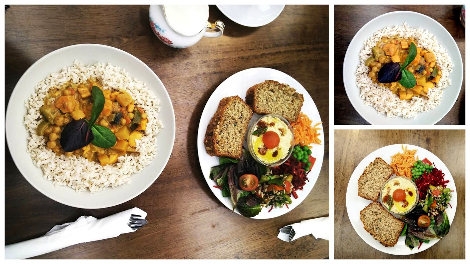 I went for their veggie curry as I was starving and wanted something warm and filling. My boyfriend Laurence went for hummus served with homemade bread and various salads - we often order something different each so we can share - the best kind of relationship is when you can steal their food!